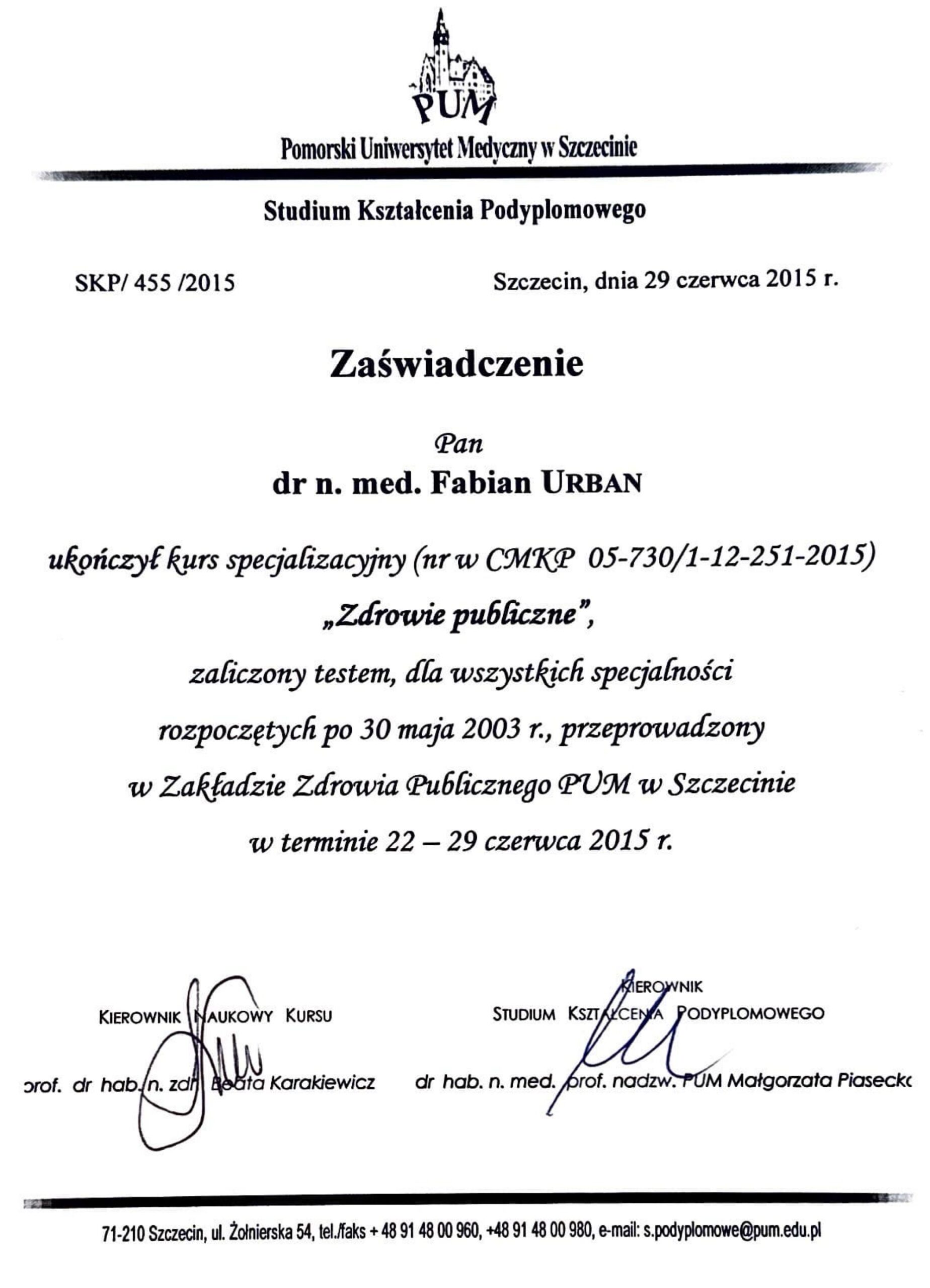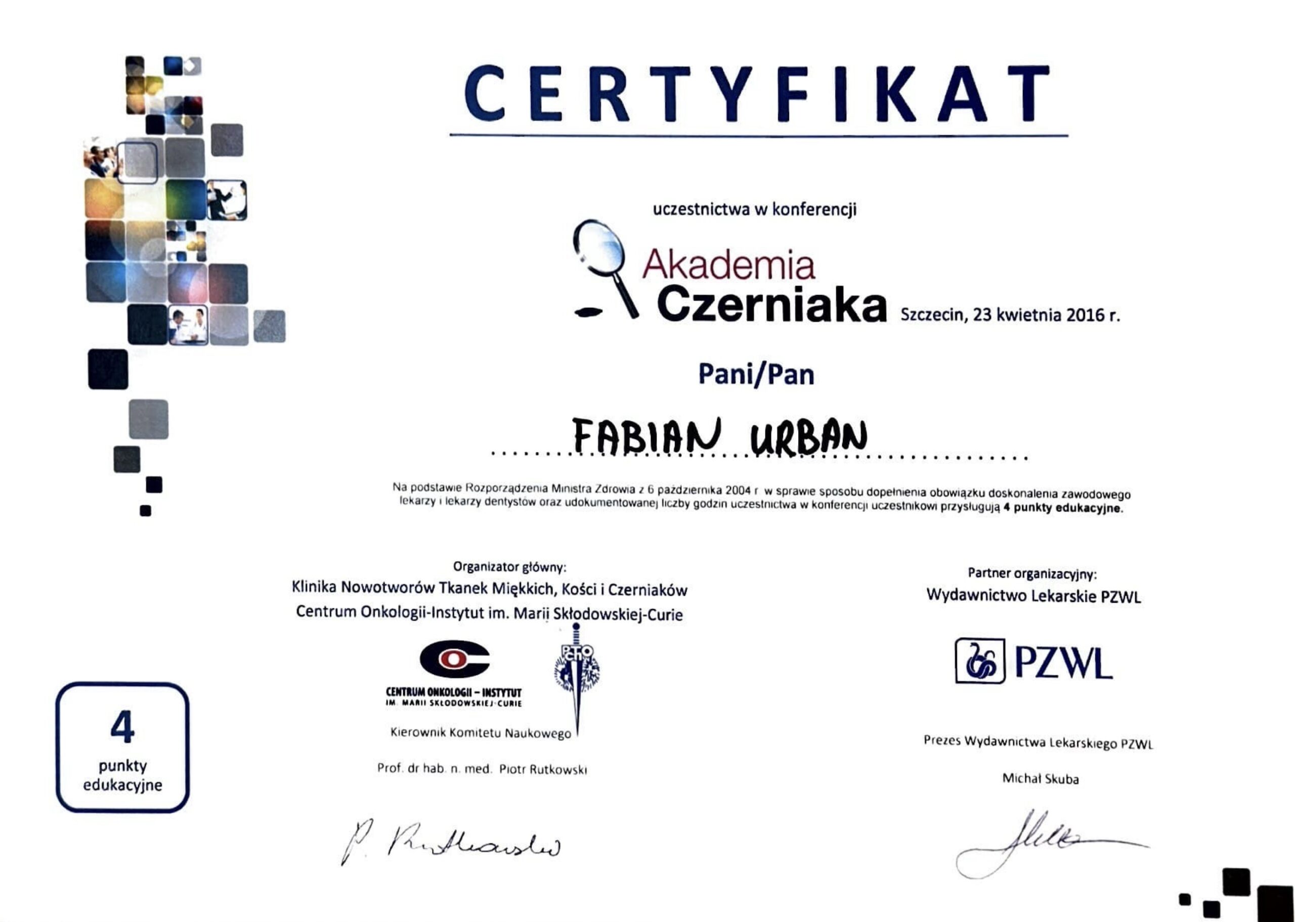 In 2010, I earned my doctorate in medical sciences by defending my thesis, supervised by Professor Barbara Wiszniewska, MD.
