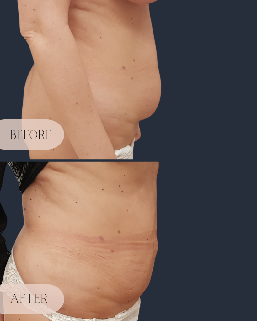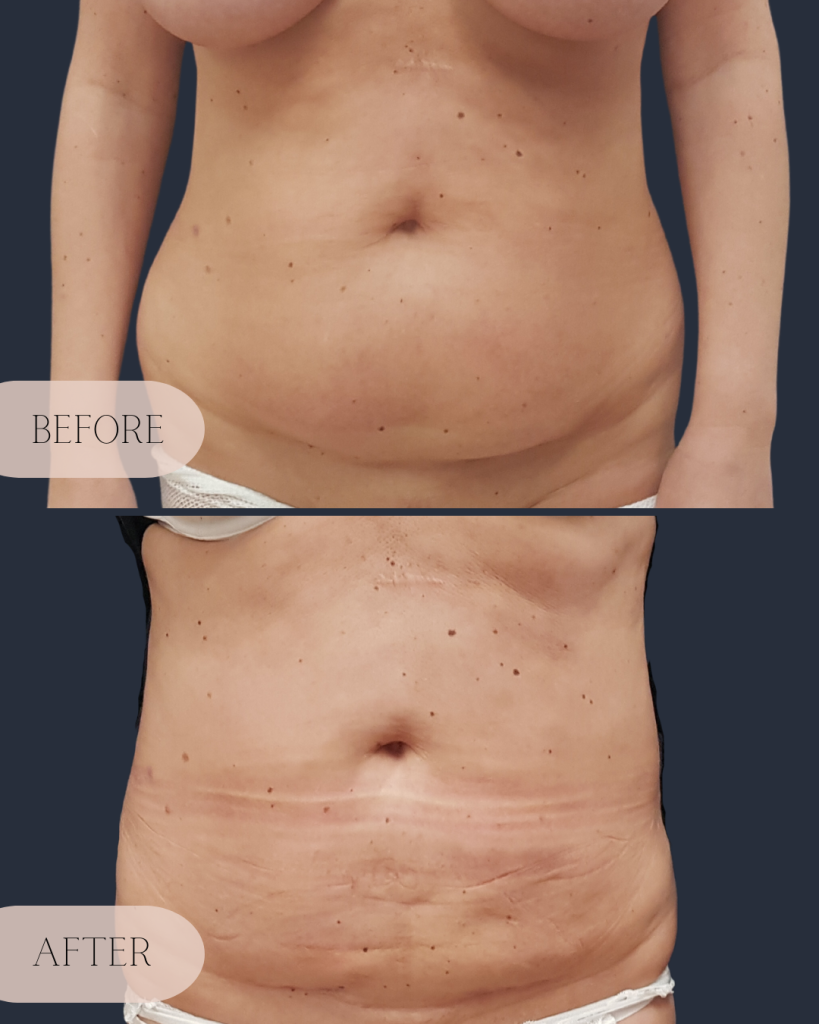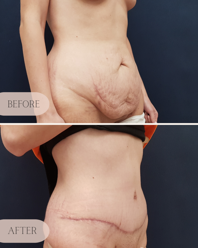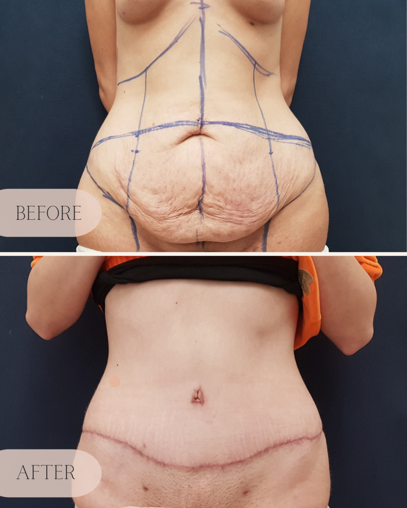 Full abdominoplasty: This procedure involves the removal of excess fat and skin in both the lower and upper abdomen including suture of the muscles along the linea alba. It is particularly effective for patients with significant excess skin and fat.